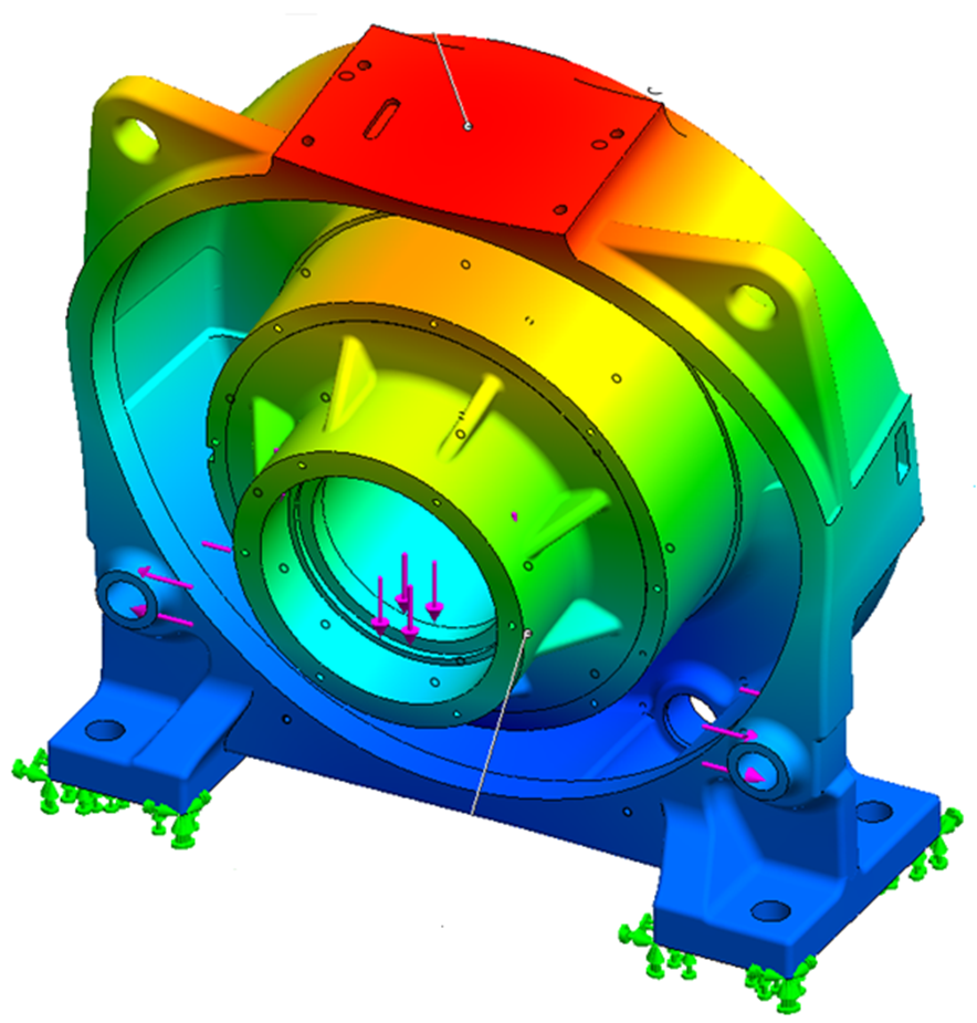 Keamanan dan keandalan yang tinggi adalah persyaratan dan atribut dasar elevator, dan masyarakat memiliki persyaratan yang lebih tinggi lagi untuk keamanan dan keandalan elevator kereta bawah tanah. Oleh karena itu, kami melakukan analisis rinci terhadap kekuatan mekanik (Gambar 7), dan mengajukan persyaratan khusus dan peningkatan untuk kapasitas menahan beban mekanis dan kinerja pengereman. Faktor keamanan untuk menahan beban komponen mekanis utama seperti dasar mesin, hub roda, sheave traksi, dan poros telah ditingkatkan.