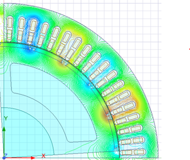 Dengan latar belakang advokasi global untuk perjalanan ramah lingkungan dan rendah karbon, pembangunan angkutan kereta api telah mengajukan persyaratan yang lebih tinggi untuk konservasi energi. Oleh karena itu, dibandingkan dengan elevator lainnya, elevator kereta bawah tanah memerlukan mesin traksi yang memiliki efisiensi lebih tinggi untuk memenuhi skenario perkotaan dengan arus penumpang yang besar. Untuk elevator dengan kecepatan kurang lebih 1 m/s, efisiensinya dapat mencapai hingga 90%. Selain itu, berdasarkan persyaratan pemasangan elevator, berat dan ukuran mesin traksi harus dikontrol. Oleh karena itu, insinyur desain mesin traksi harus memiliki pengalaman yang kaya dalam desain elektromagnetik, mengoptimalkan desain elektromagnetik dengan perangkat lunak analisis medan elektromagnetik canggih (Gambar 5), dan memilih bahan elektromagnetik yang sesuai untuk memenuhi persyaratan.