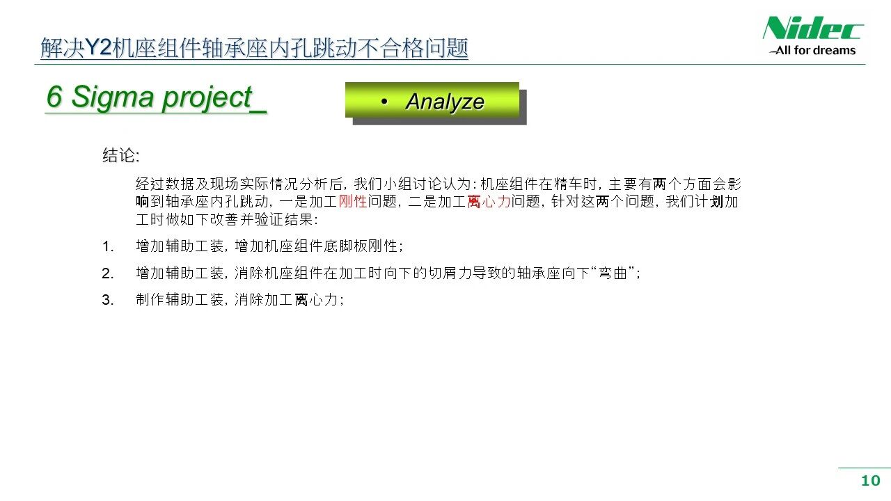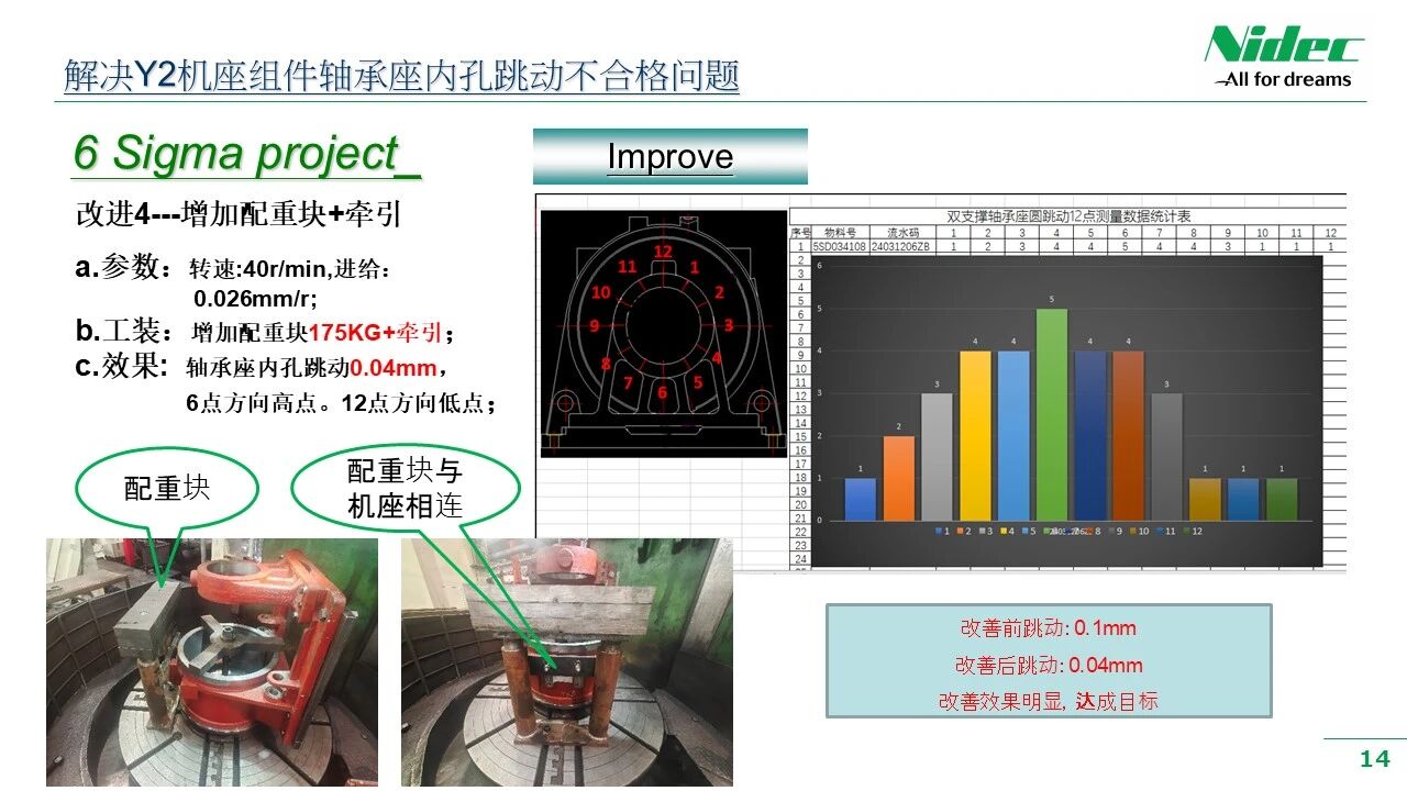 Mengikuti kebijakan mutu perusahaan dan filosofi manajemen "Puaskan Diri Sendiri, Puaskan Pelanggan, Jujur dan Dapat Dipercaya, dan Berjuang untuk Keunggulan", kami terus menyediakan produk dengan efektivitas biaya lebih tinggi dan kualitas lebih stabil kepada pelanggan. Baru-baru ini, di bengkel permesinan, terdapat fenomena dimana dimensi kunci atau toleransi geometrik dari beberapa proses utama tidak stabil setelah pemrosesan dan gagal memenuhi persyaratan kontrol 6 - Sigma. Manajemen perusahaan sangat mementingkan hal ini dan telah mempromosikan bengkel tersebut untuk membentuk satuan tugas peningkatan kualitas bengkel. Gugus tugas ini terdiri dari para pemimpin dari departemen terkait, insinyur terkait, pemimpin tim, dan karyawan produksi lini depan. Dengan menggunakan metode perbaikan 6 - Sigma DMAIC, kampanye peningkatan kualitas yang komprehensif telah diluncurkan. Melalui serangkaian kegiatan perbaikan seperti penyelidikan latar belakang, pengumpulan data, ringkasan masalah, analisis penyebab, dan perumusan langkah-langkah perbaikan jangka pendek dan jangka panjang, pekerjaan peningkatan kualitas telah dilaksanakan sepenuhnya. Kegiatan perbaikan ini secara komprehensif telah meningkatkan kemampuan praktis para manajer dan karyawan akar rumput dalam memahami, menerapkan dan mempromosikan alat perbaikan 6 - Sigma secara paralel. Ini membantu mengurangi variasi dan fluktuasi karakteristik kualitas suku cadang mesin, sehingga meningkatkan kualitas produksi motor secara keseluruhan dan membantu menyediakan produk dengan kualitas lebih baik kepada pelanggan.