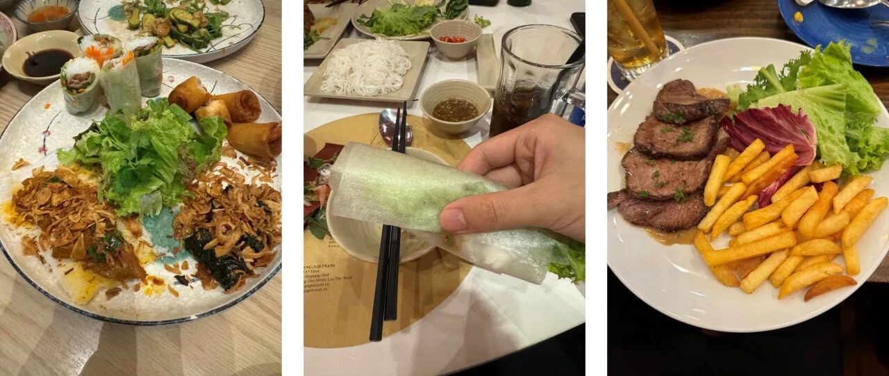 Di luar pameran, saya beruntung bisa menjelajahi tempat-tempat indah di Vietnam, yang masing-masing penuh dengan pesona unik. Kota Ho Chi Minh adalah surganya masakan Vietnam, tempat saya mencicipi masakan asli Vietnam, termasuk Phở (sup mie daging sapi), Bánh Mì (baguette Vietnam), dan lumpia.