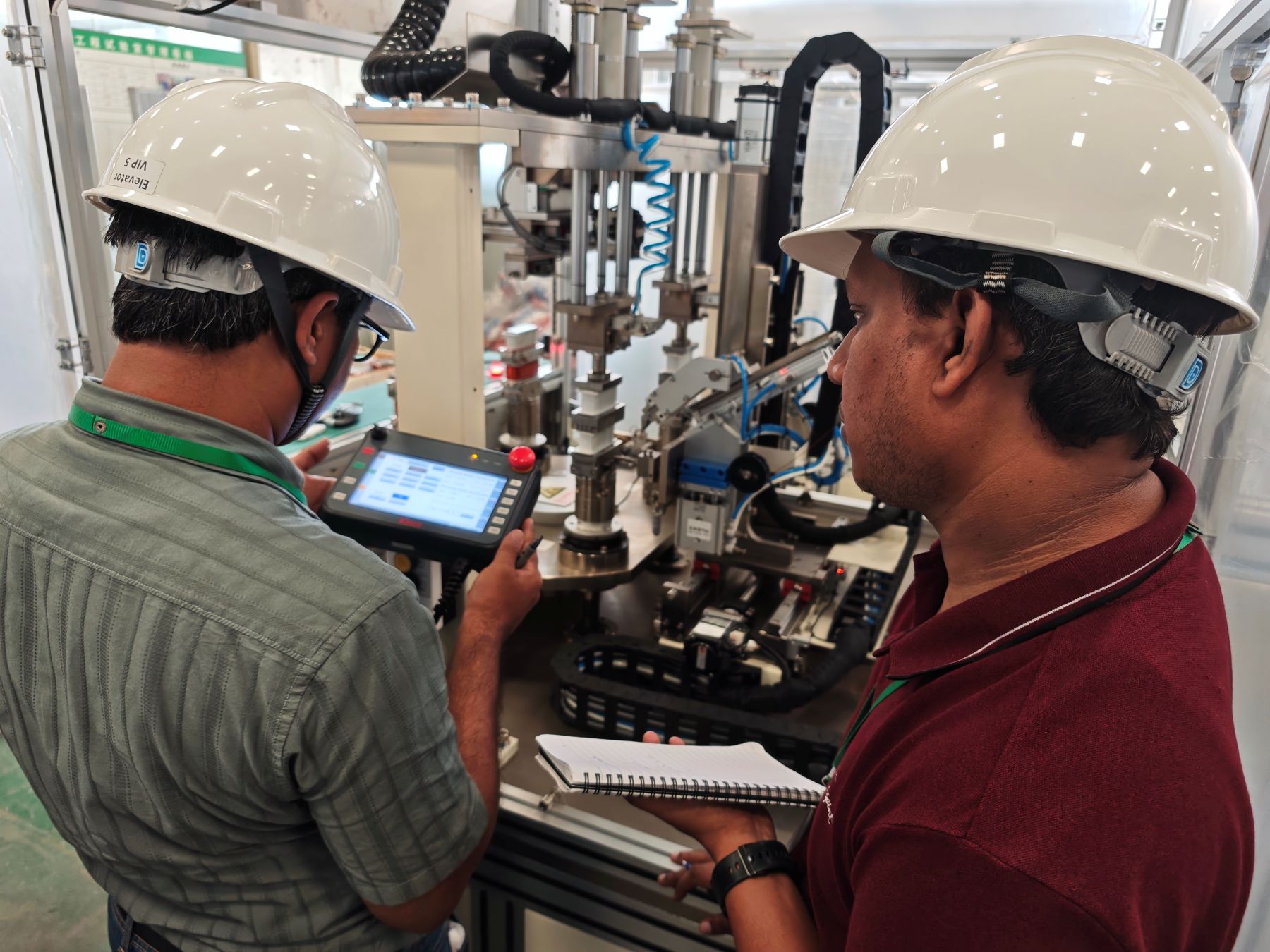 Di bengkel produksi perusahaan kami, tim India mengamati dengan cermat lini produksi mesin traksi. Dari pemrosesan komponen inti hingga perakitan dan debugging seluruh mesin, poin-poin penting manajemen kualitas di setiap tautan memicu diskusi hangat. Insinyur perusahaan kami berfokus pada pengenalan teknologi pemrosesan presisi tinggi dan langkah-langkah jaminan kualitas dalam proses perakitan otomatis. Rekan-rekan India sering mengangguk dan berbagi pengalaman praktis mereka dalam pengendalian kualitas selama produksi lokal.
